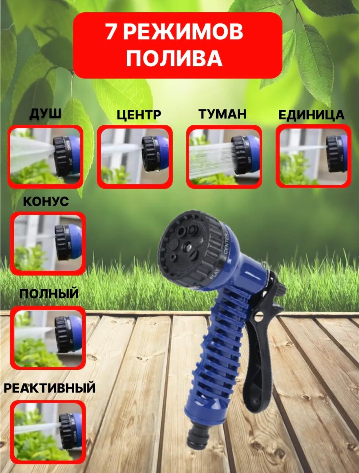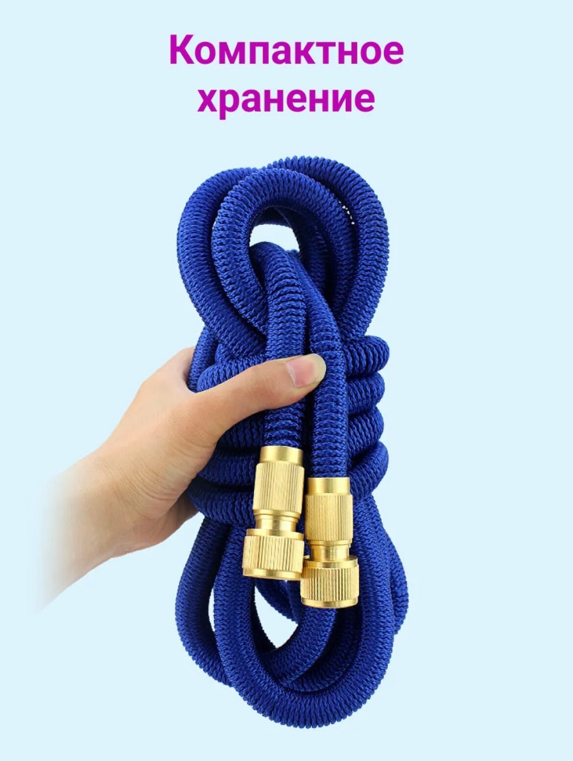10 цен на Шланг поливочный 3/4 растягивающийся садовый, 75 метров, для полива с насадкой, синий