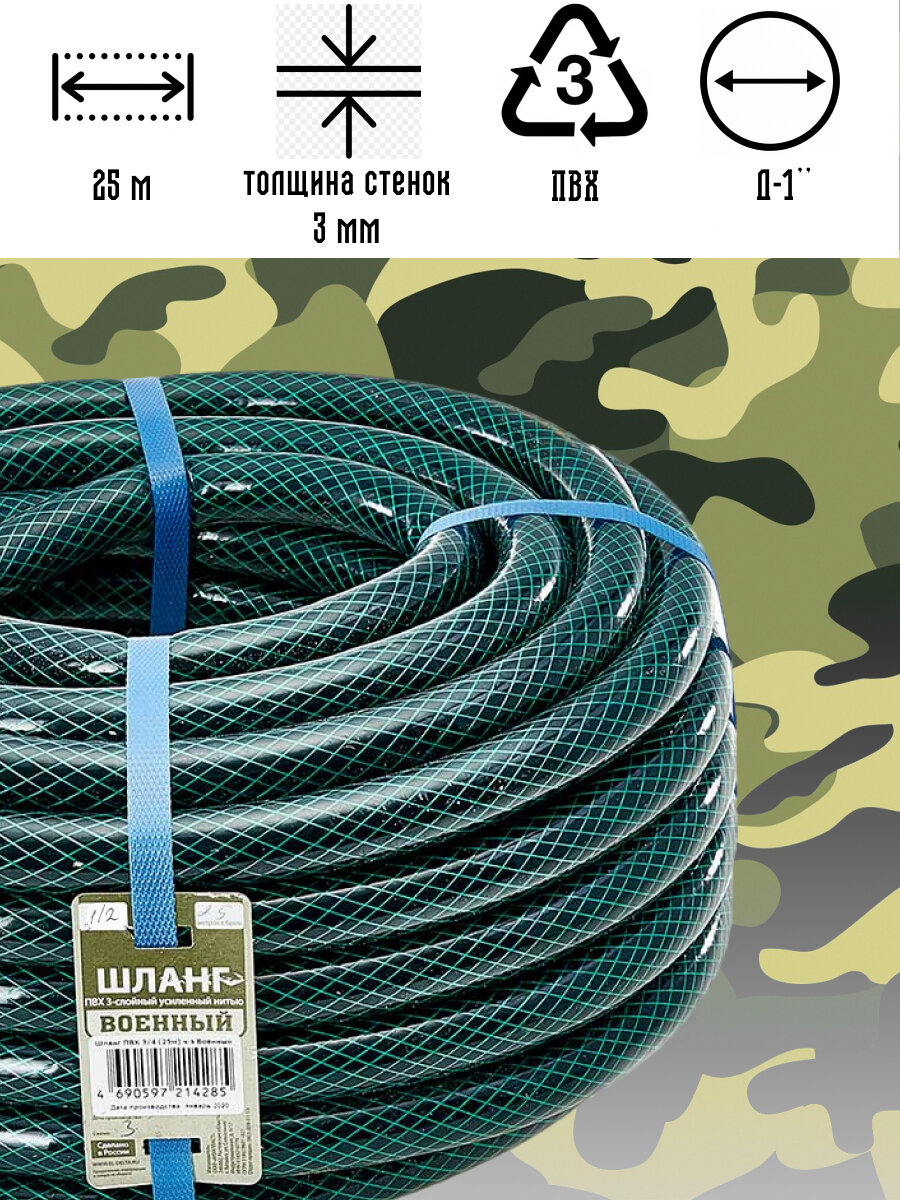 10 цен на Шланг поливочный, диаметр 1", длина 25 м "Военный" армированный, 3-х слойный