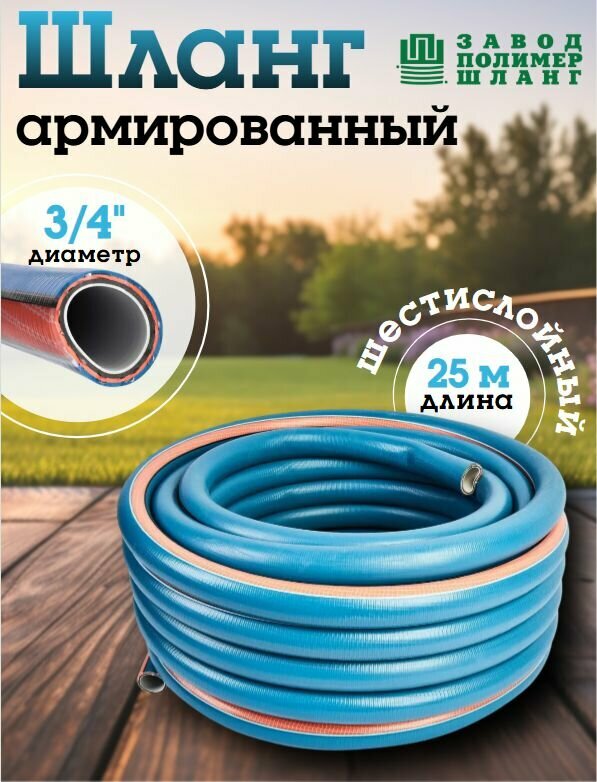 Шланг для полива шестислойный ПолимерШланг ТЭП PRESTIGE 3/4", 25 м, защита от UV лучей, антибактериальный информация: