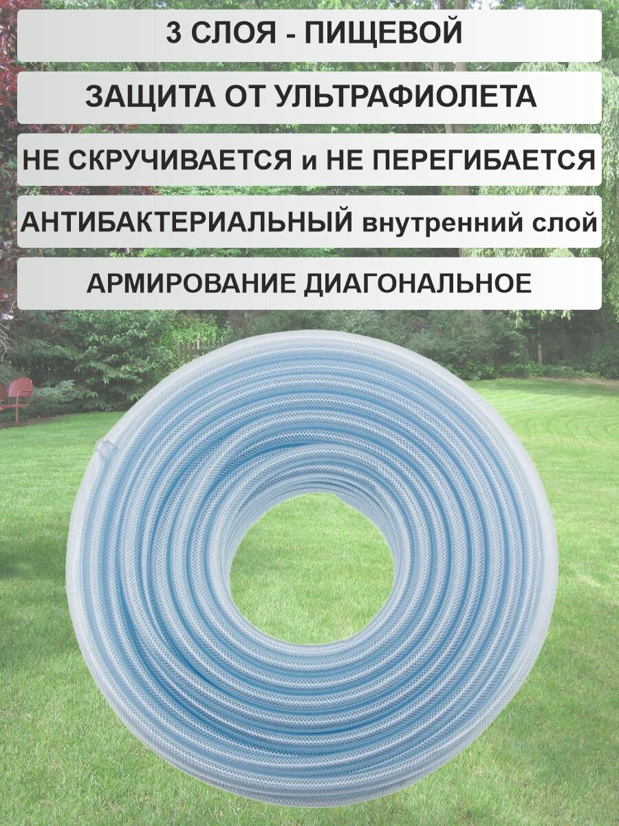 10 цен на Шланг поливочный ПВХ Силикон армированный / 3-х слойный / прозрачный 3/4" 50м