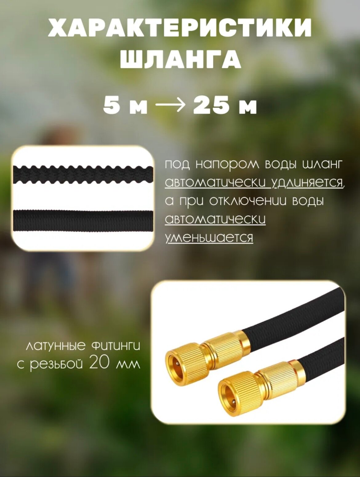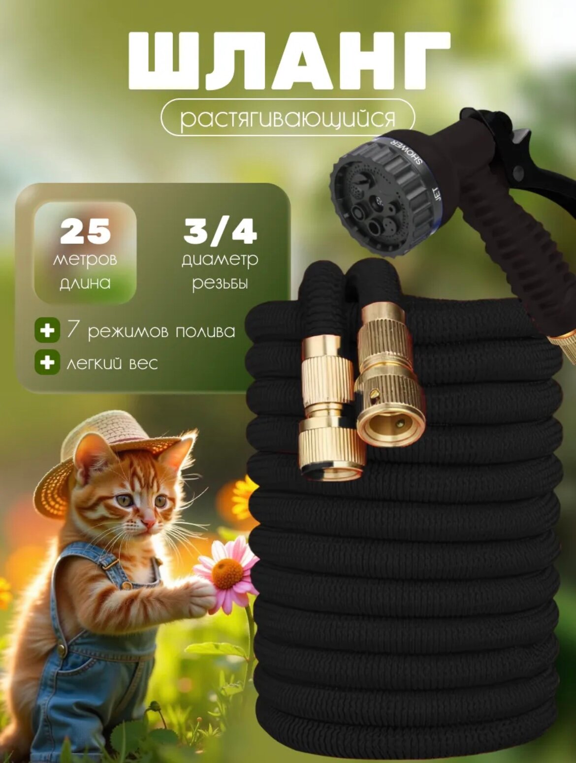 Шланг поливочный 3/4 растягивающийся садовый, 25 метров, для полива с насадкой, черный информация: