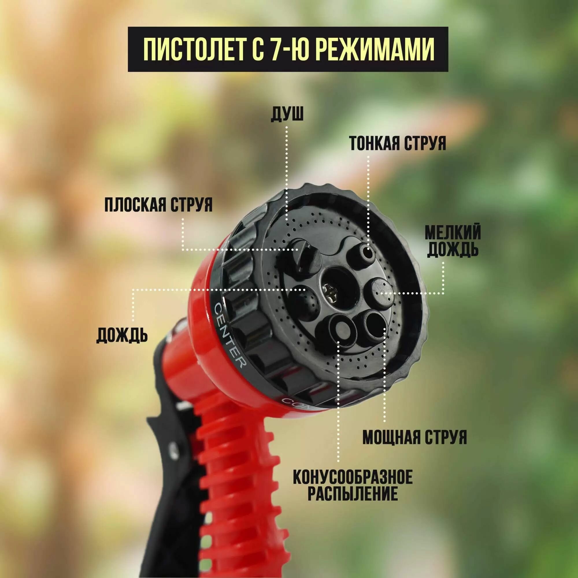 Шланг садовый растягивающийся для полива и мойки автомобиля