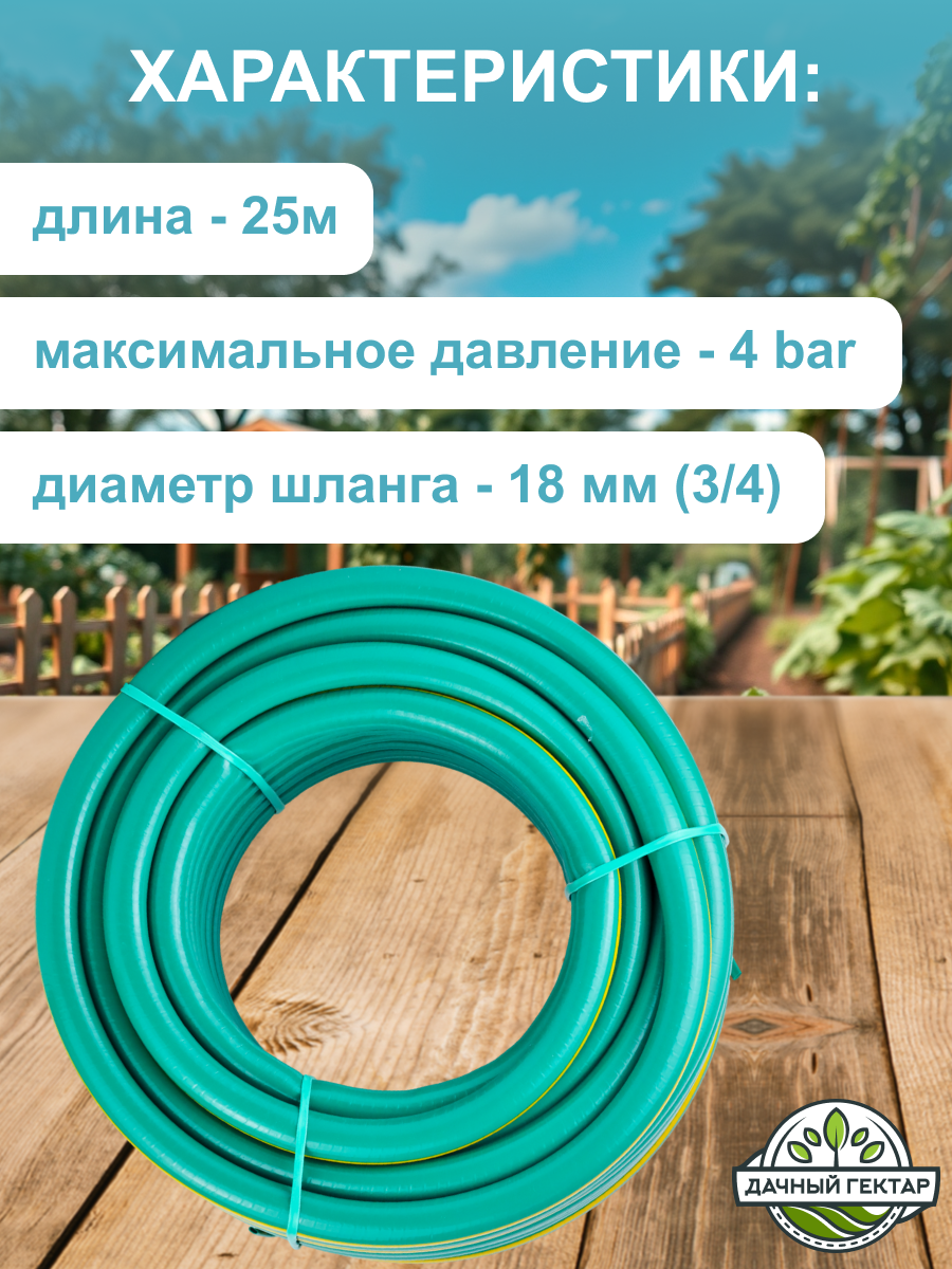Шланг поливочный ПВХ 3-х слойный армированный 18мм/25м "Дачный Гектар" толщина 2мм /4 bar информация: