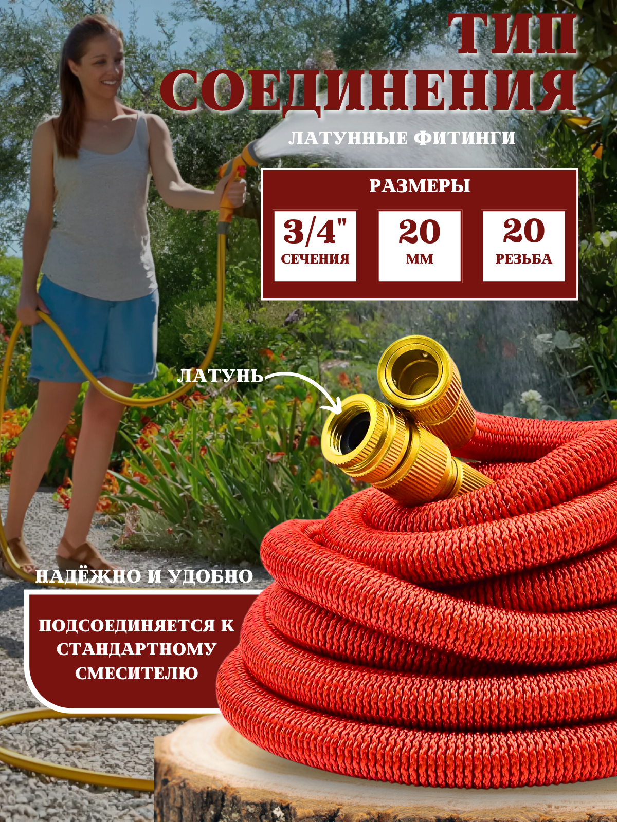 Поливочный шланг 50 метров, растягивающийся шланг для полива без быстросъема с насадкой распылителем, для дачи, садовый, удлиняющийся информация: