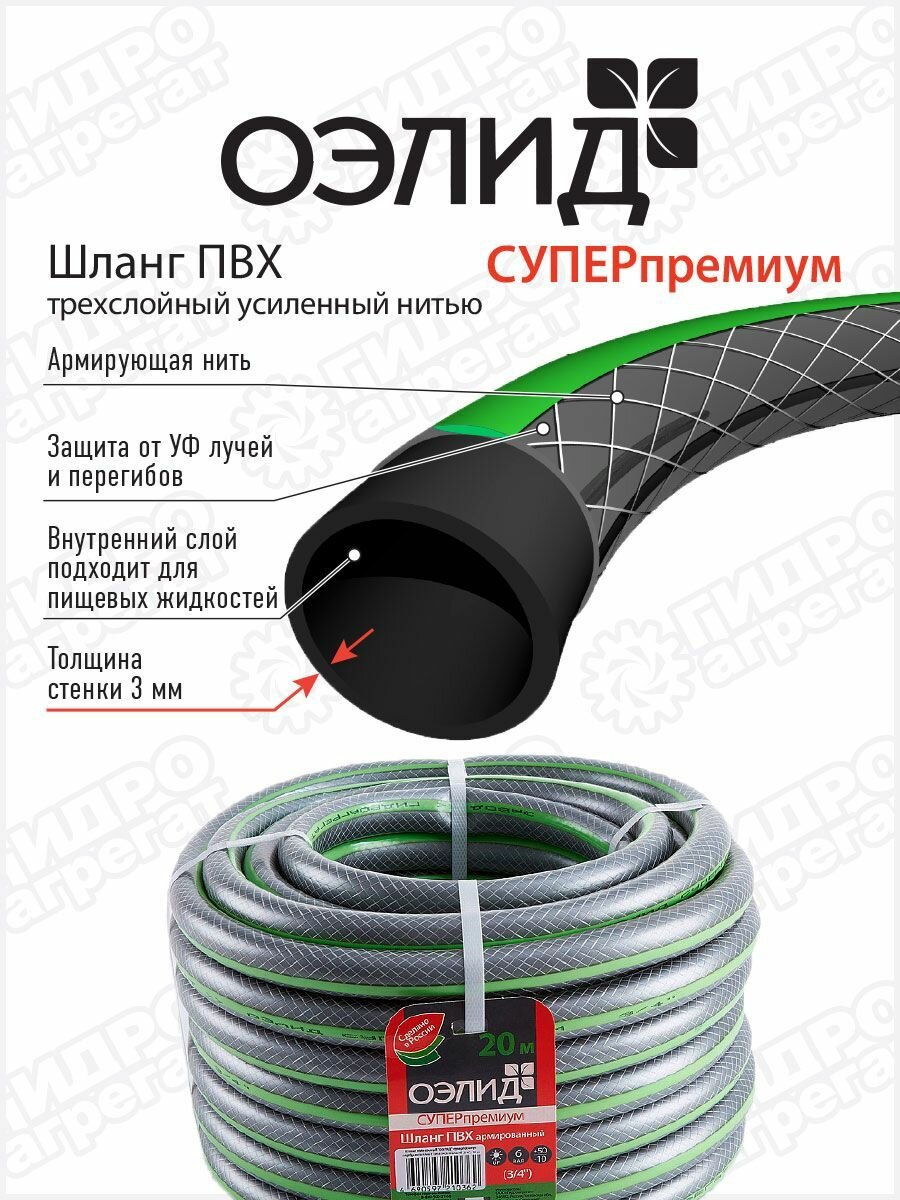 Шланг поливочный Гидроагрегат ОЭЛИД СУПЕР Премиум, 3/4 дюйма, 20 м информация: