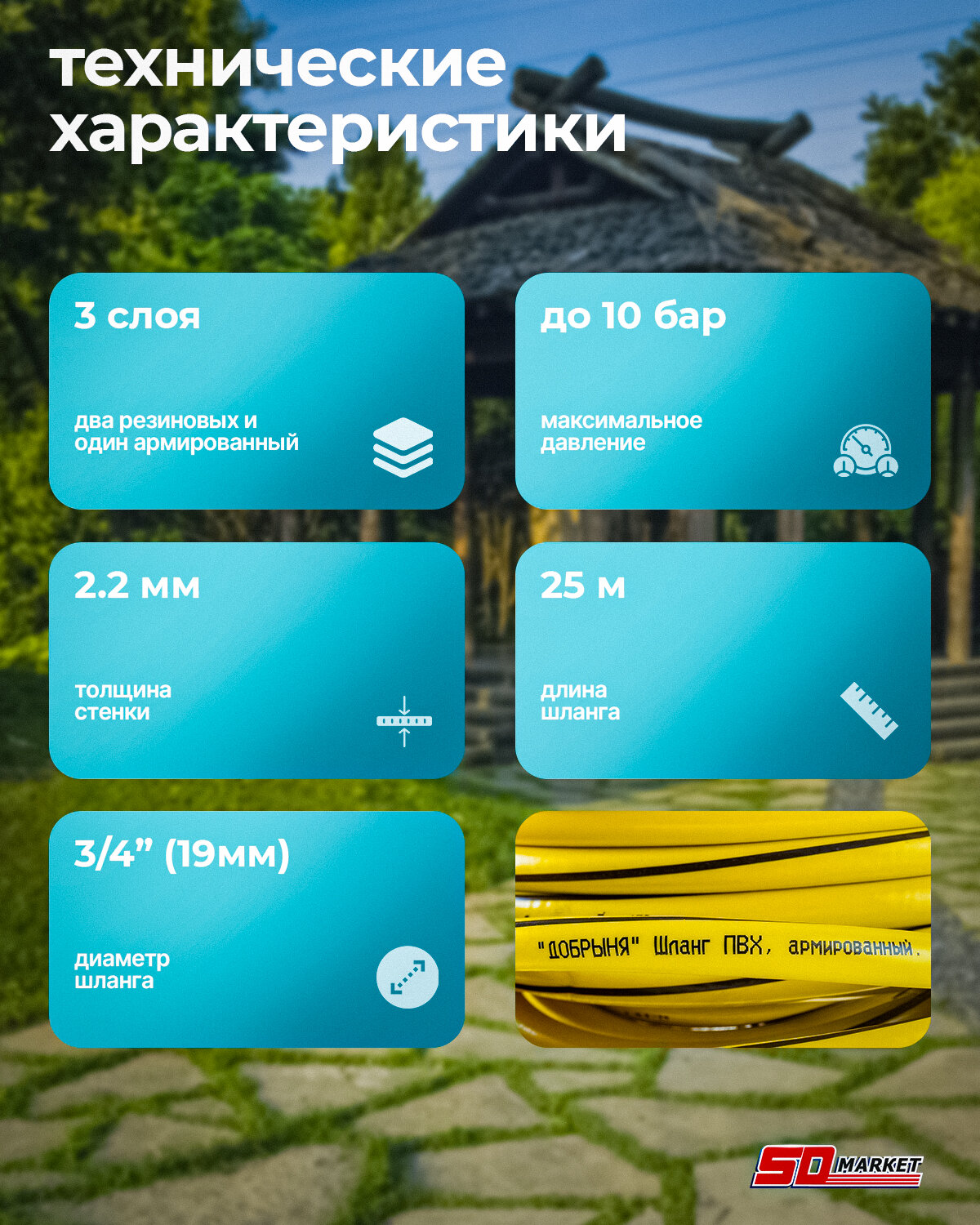 Шланг поливочный 25 метров, армированный прочный ПВХ 3/4 Добрыня информация:
