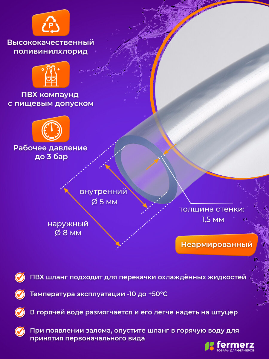 Отзывы на Шланг пищевой ПВХ 5 х 1,5 мм, толщина 1,5 мм, прозрачный , 10 метров