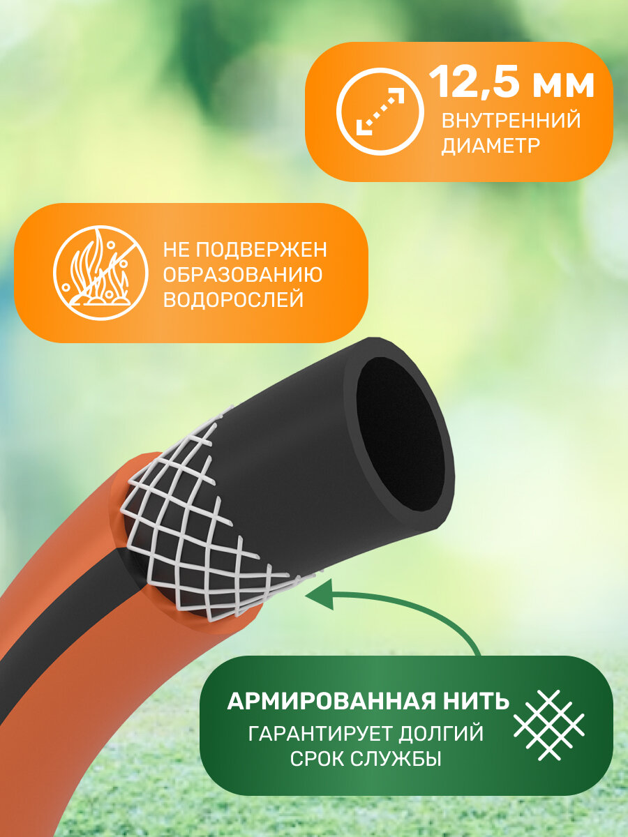 10 цен на Шланг поливочный садовый из ПВХ 1/2" 3-х слойный армированный длина 25 метров Четыре Сезона