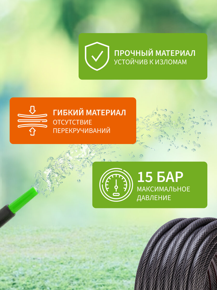 Отзывы на Шланг поливочный садовый ПВХ 1/2" 3-х слойный армированный длина 25 метров Четыре Сезона
