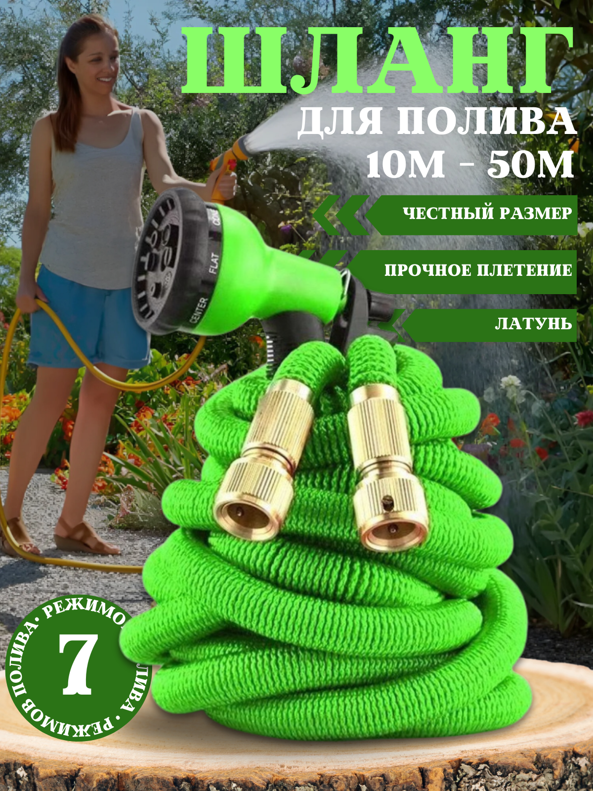 Отзывы на Поливочный шланг 50 метров, растягивающийся шланг для полива без быстросъема с насадкой распылителем, для дачи, садовый, удлиняющийся.