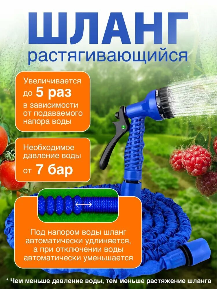 Шланг поливочный Magic Garden Hose растягивающийся до 60 метров, шланг для полива садовый с фитингами и распылителем информация: