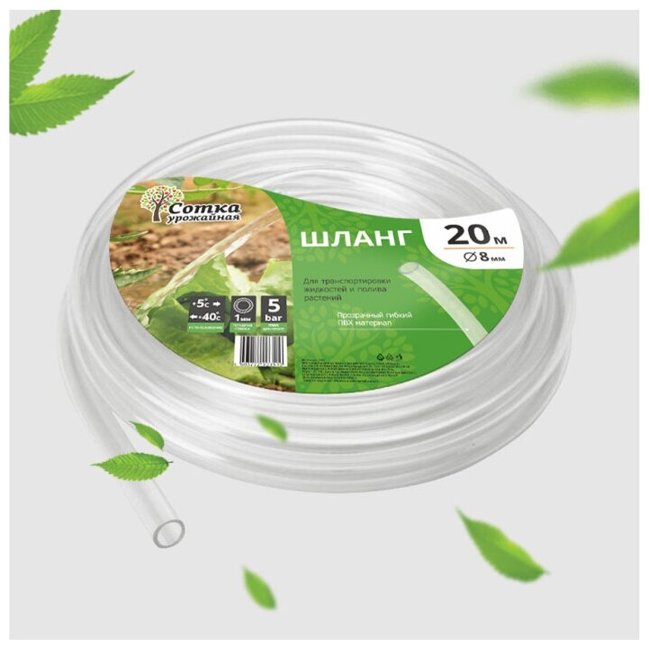 Шланг поливочный садовый для дачи и огорода ПВХ d= 8мм (20 м) `Урожайная сотка` информация:
