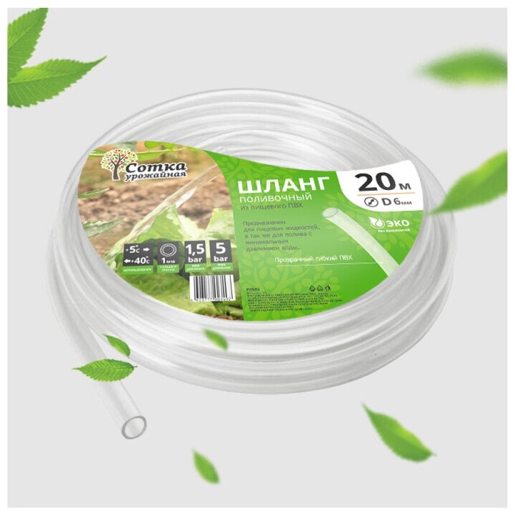 Шланг поливочный садовый для дачи и огорода ПВХ d= 6мм (20 м) `Урожайная сотка` информация:
