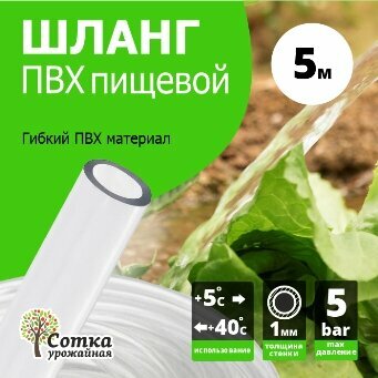 Шланг поливочный садовый для дачи и огорода ПВХ d= 8мм (5 м) `Урожайная сотка` информация: