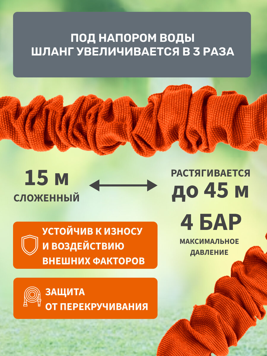 Шланг поливочный растягивающийся и пистолет для полива 45 м Четыре сезона информация: