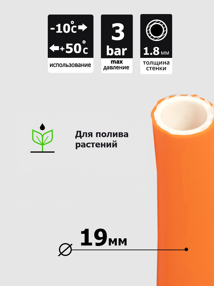 Шланг поливочный садовый `Урожайная сотка` ПВХ, армированный для сада и огорода d=3/4 (19 мм) (20 м) Стандарт информация: