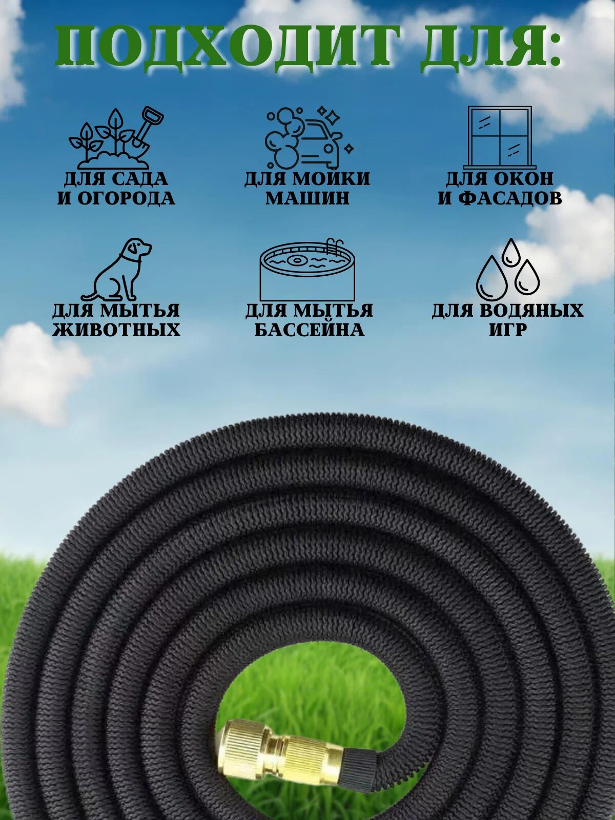 Шланг садовый растягивающийся для полива и мойки автомобиля