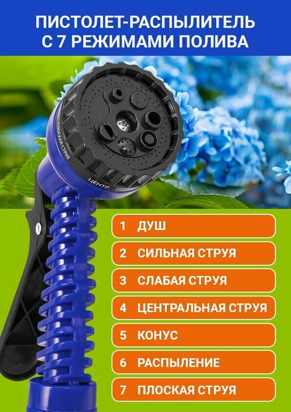 Шланг садовый растягивающийся для полива и мойки автомобиля