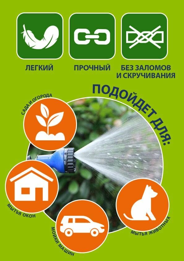Шланг садовый растягивающийся для полива и мойки автомобиля