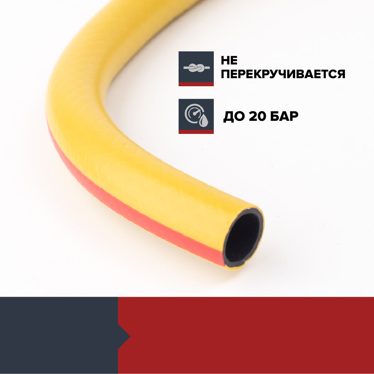 Шланг поливочный Резиновый (ТЭП) Soft Touch армированный, 1/2", 25 м, желтый, давление 7-15 бар. В придачу