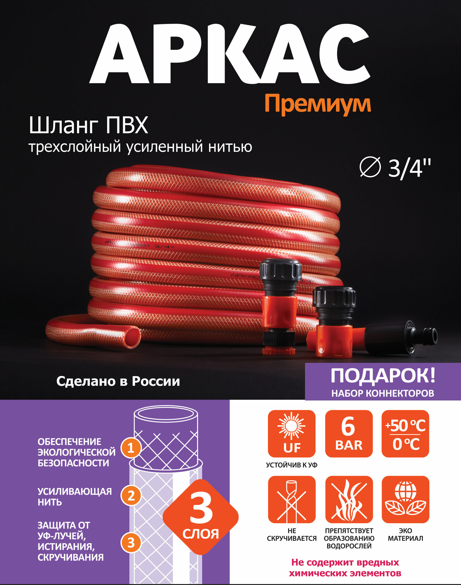 Шланг поливочный Гидроагрегат АРАКС Премиум, 3/4 дюйма, 20 м, коннекторы в комплекте информация: