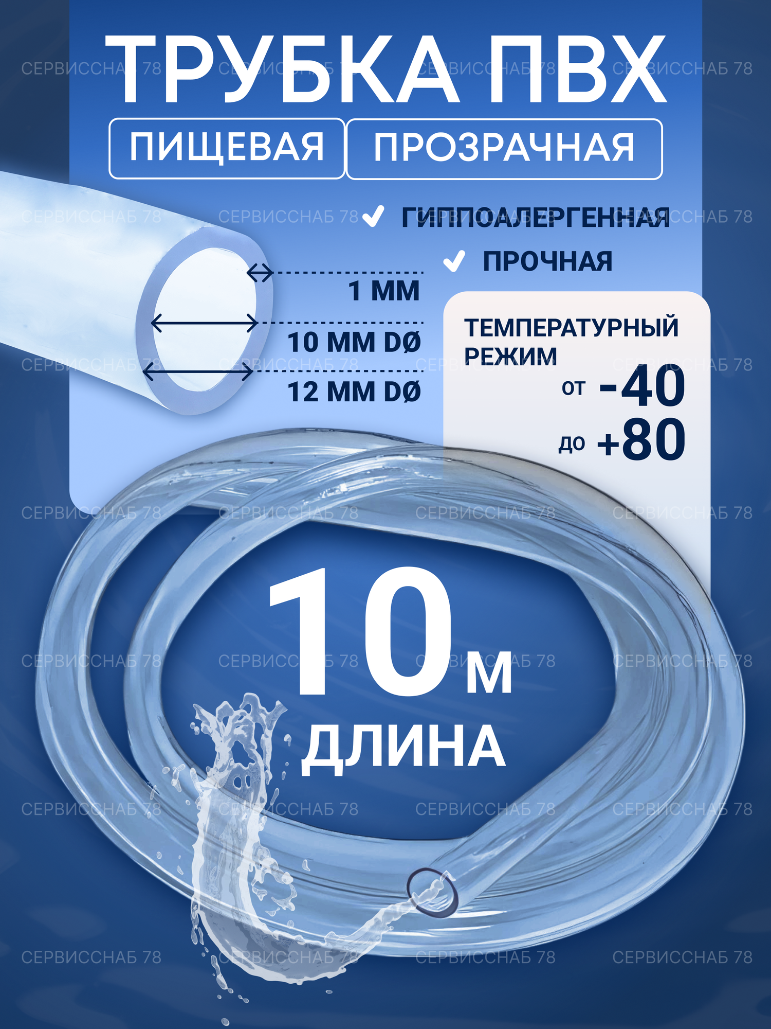 Трубка ПВХ прозрачная 10х12 10м информация: