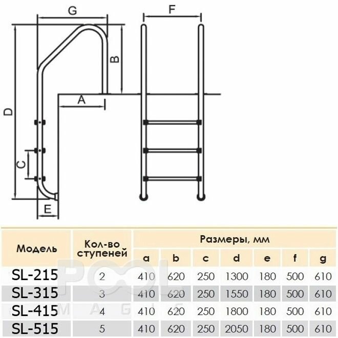 Лестница для бассейна Poolmagic SL 515, 5 ступеней, нержавеющая сталь AISI-304 информация: