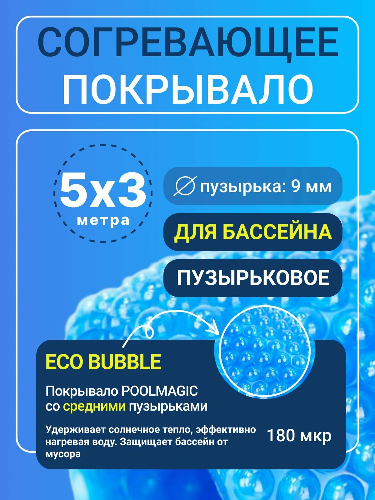 Согревающее покрывало Poolmagic ECO Bubble, для бассейна, плавающее, 5x3 м, синее информация: