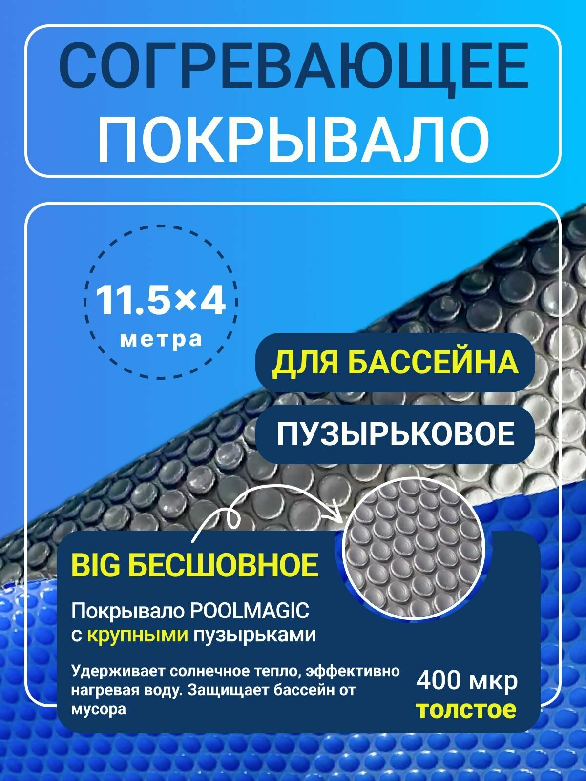 Согревающее покрывало 9х4 м Poolmagic BIG пузырьковое плавающее, синее/серебристое, 400 мкм, тент для бассейна / Аксессуары для бассейна 23 896 ₽