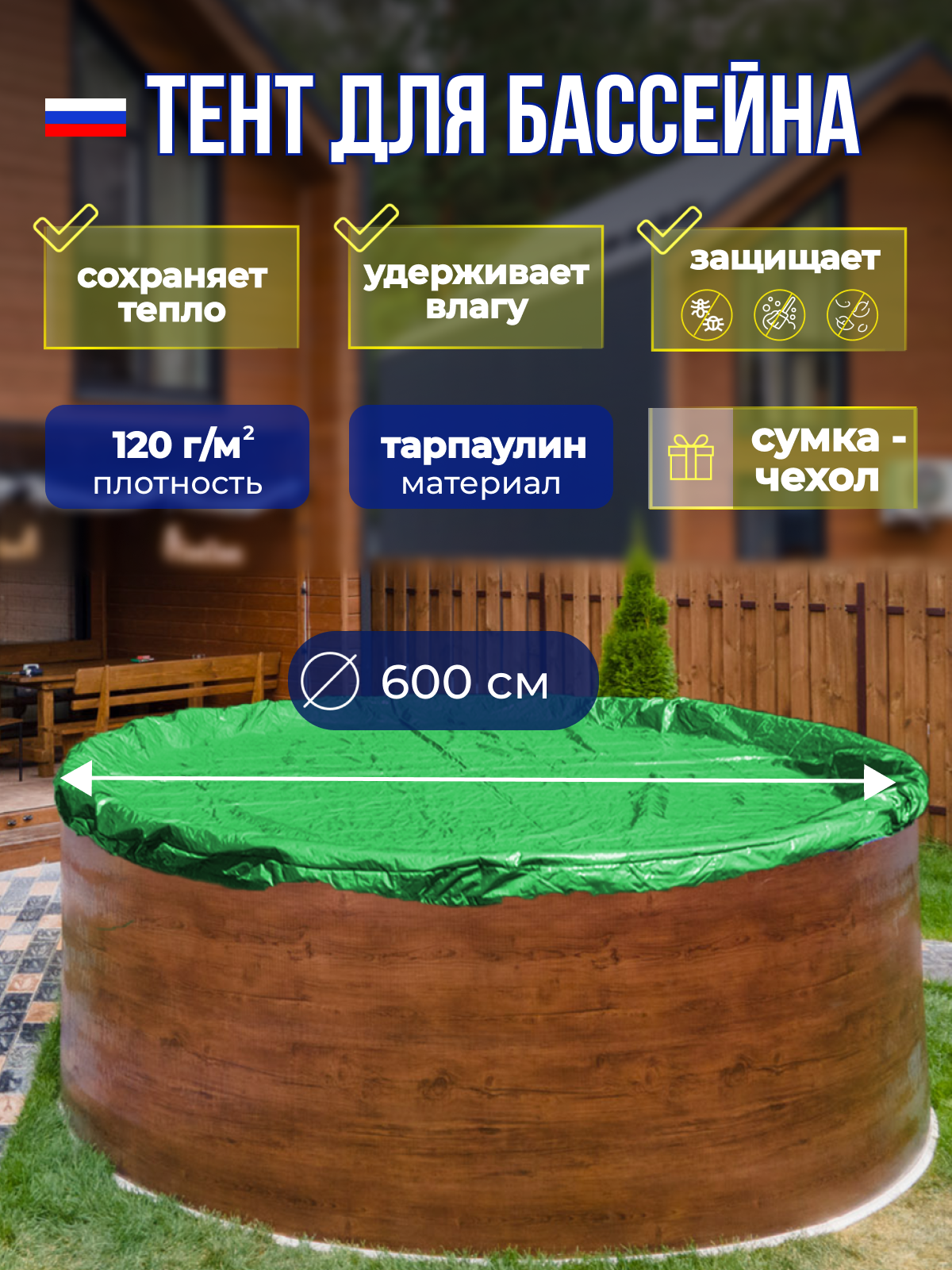 Тент для каркасного бассейна 6 м Лагуна, круглый, тарпаулин, 120г/м2, защита от загрязнений информация:
