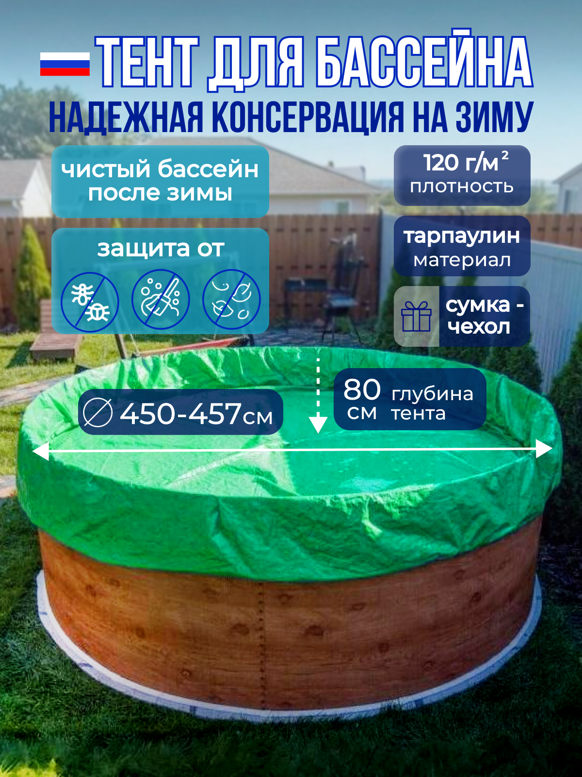 Тент Лагуна для зимней консервации, круглый, изумрудный, для каркасного бассейна, 4,5 м информация: