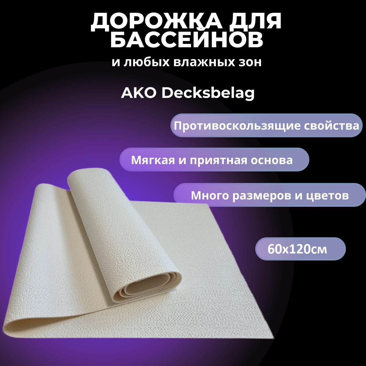 Коврик в ванную, бассейн, сауну AKO Decksbelag белый 60х120см информация: