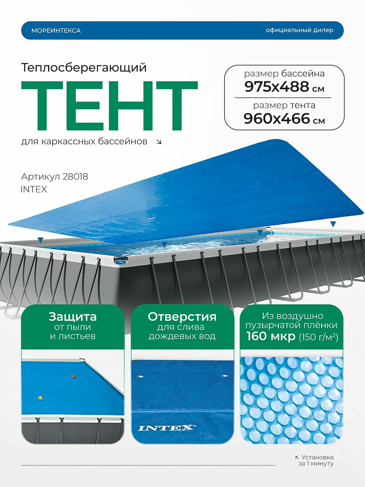 Тент теплосберегающий для бассейна 975x488см Intex 28018 информация:
