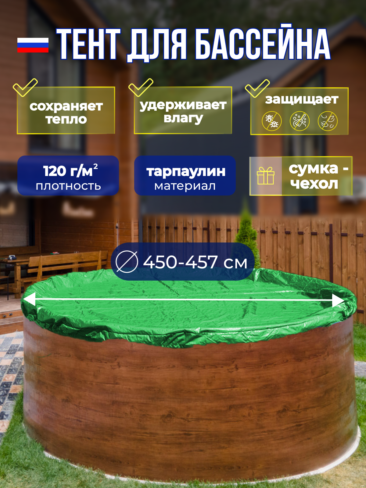 Тент для бассейна Лагуна 450 - 457 см, тарпаулин, плотность 120г/м² информация: