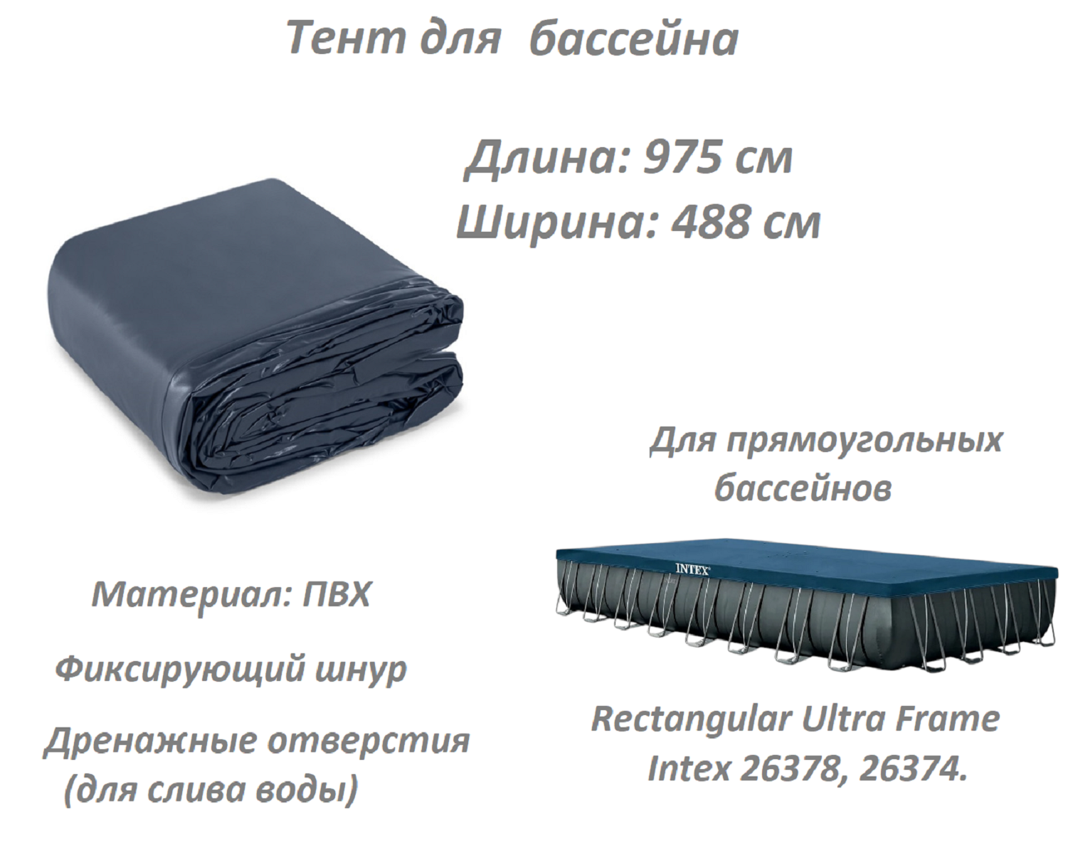 Тент для прямоугольного каркасного бассейна 975 х 488 см, Intex Xtr Frame Pool 10757 информация: