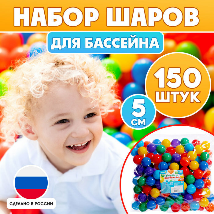Набор шариков для бассейна, 150 шт, диаметр — 5 см, разноцветные, 10067783 информация: