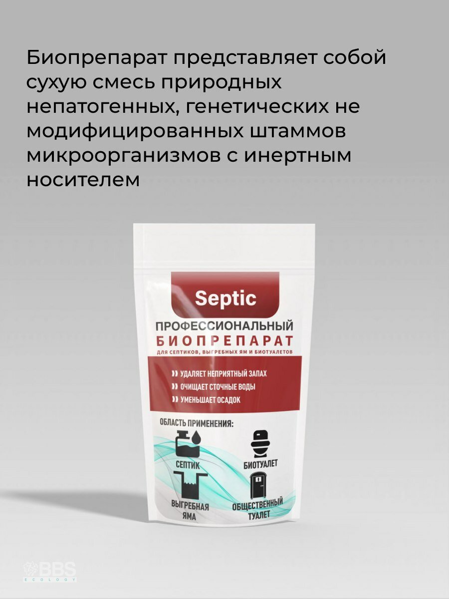 10 цен на Бактерии для септика, станции биологической очистки, автономной канализации или выгребной ямы. BBS Septic - 50 гр.