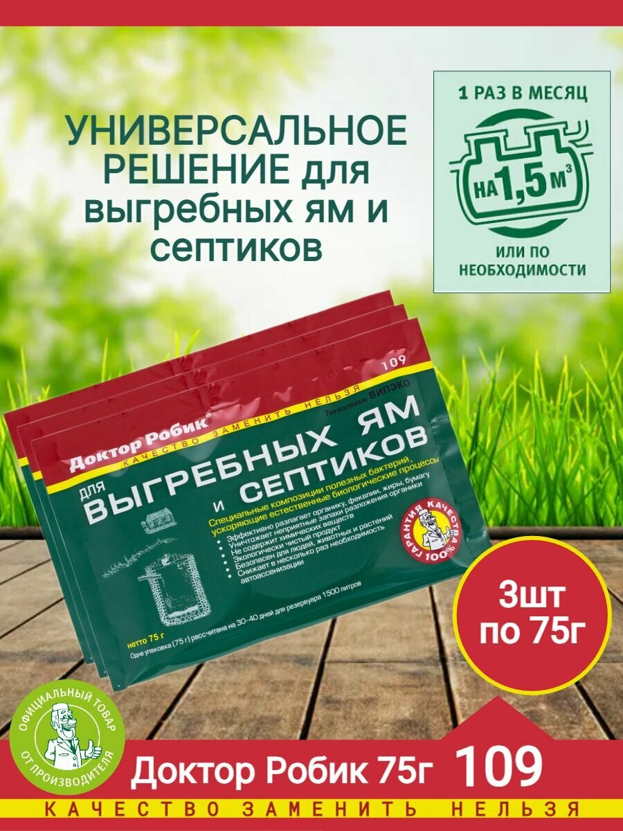 10 цен на Бактерии Доктор Робик 109 для септиков, выгребных ям и дачных туалетов, 3 шт. по 75 г
