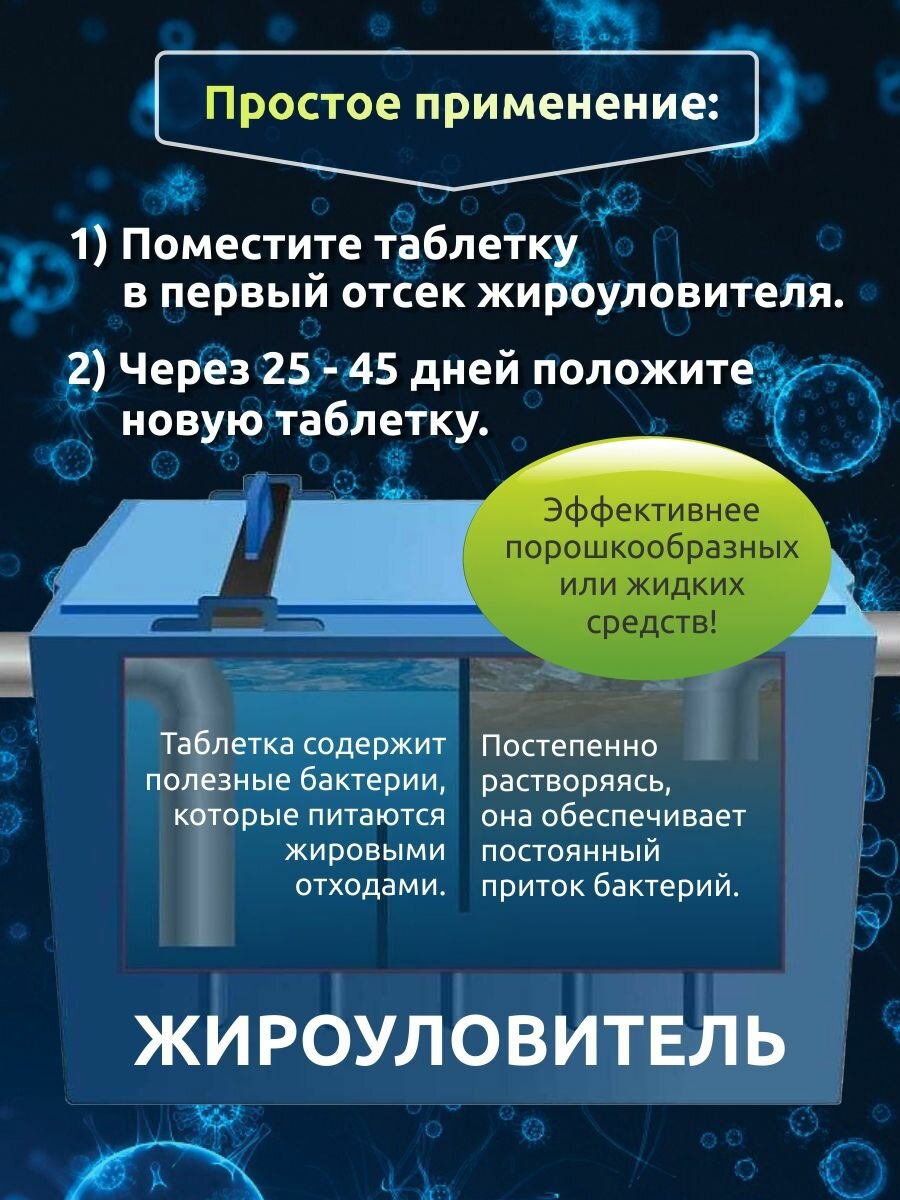 Бактерии для жироуловителя. Таблетированный препарат 6 таблетка 600гр. информация: