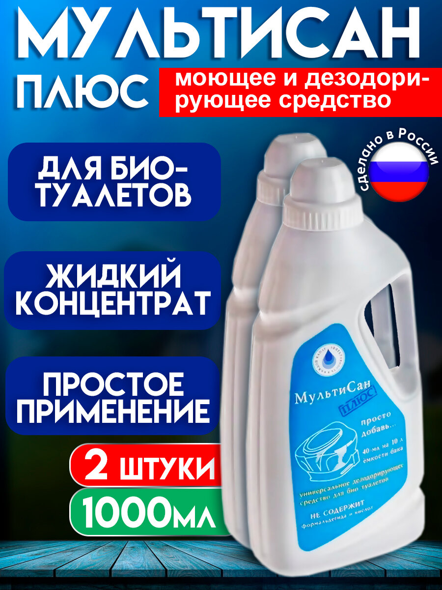 Мультисан Плюс средство для биотуалетов моющее дезодорирующее от запаха, жидкость концентрат для биотуалета 1л, 2шт информация: