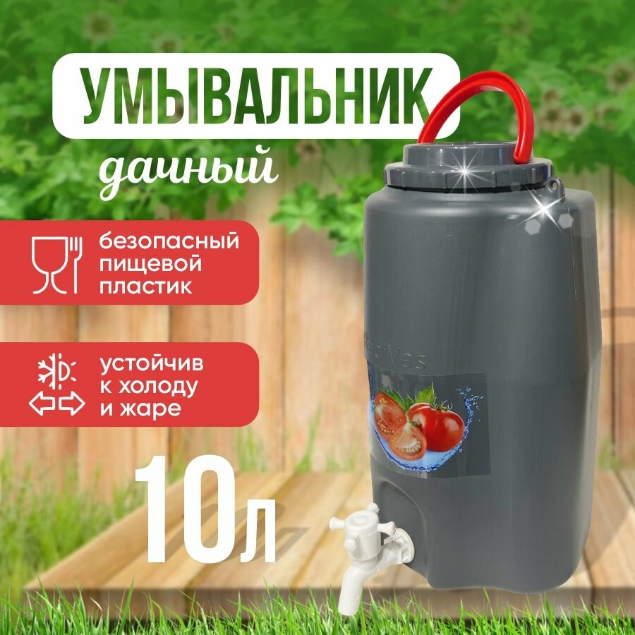 Умывальник - рукомойник подвесной с краном "Томаты", серый, пластик / Умывальник для дачи переносной уличный информация: