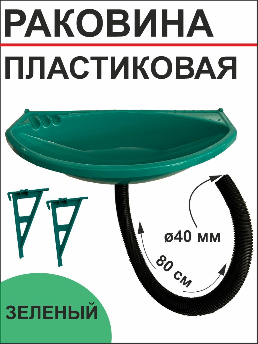 Раковина пластмассовая с сифоном и кронштейном зеленая информация: