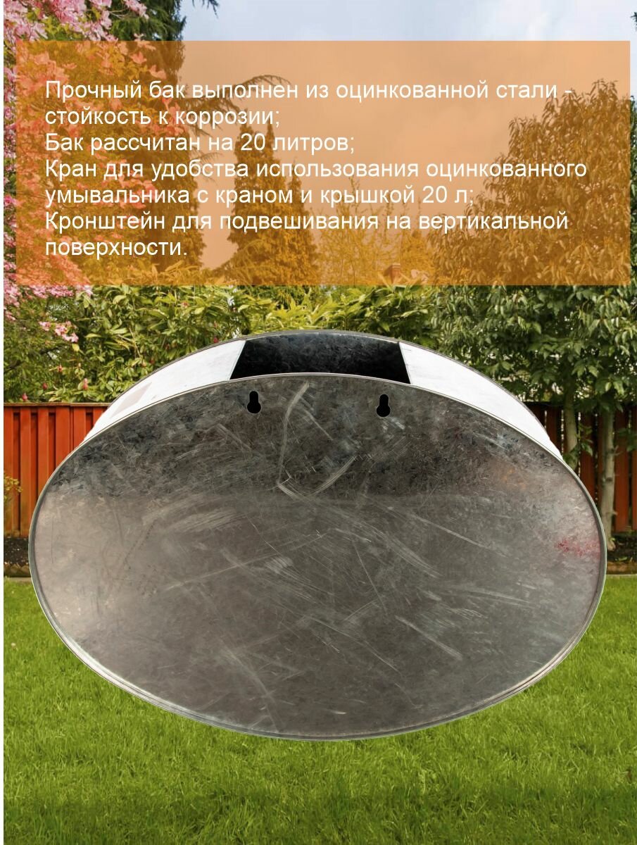 Умывальник дачный овал, объем 20 литров, оцинкованный, с краном и крышкой информация: