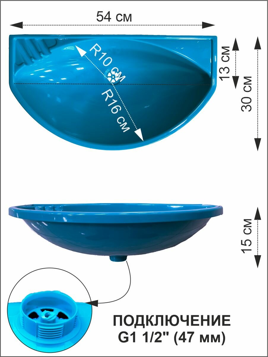 Раковина пластмассовая с сифоном и кронштейном синяя информация: