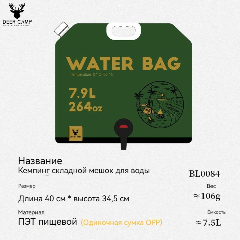 Складная портативная бутылка для воды для использования на открытом воздухе - идеальна для мытья рук и лица в кемпинге информация: