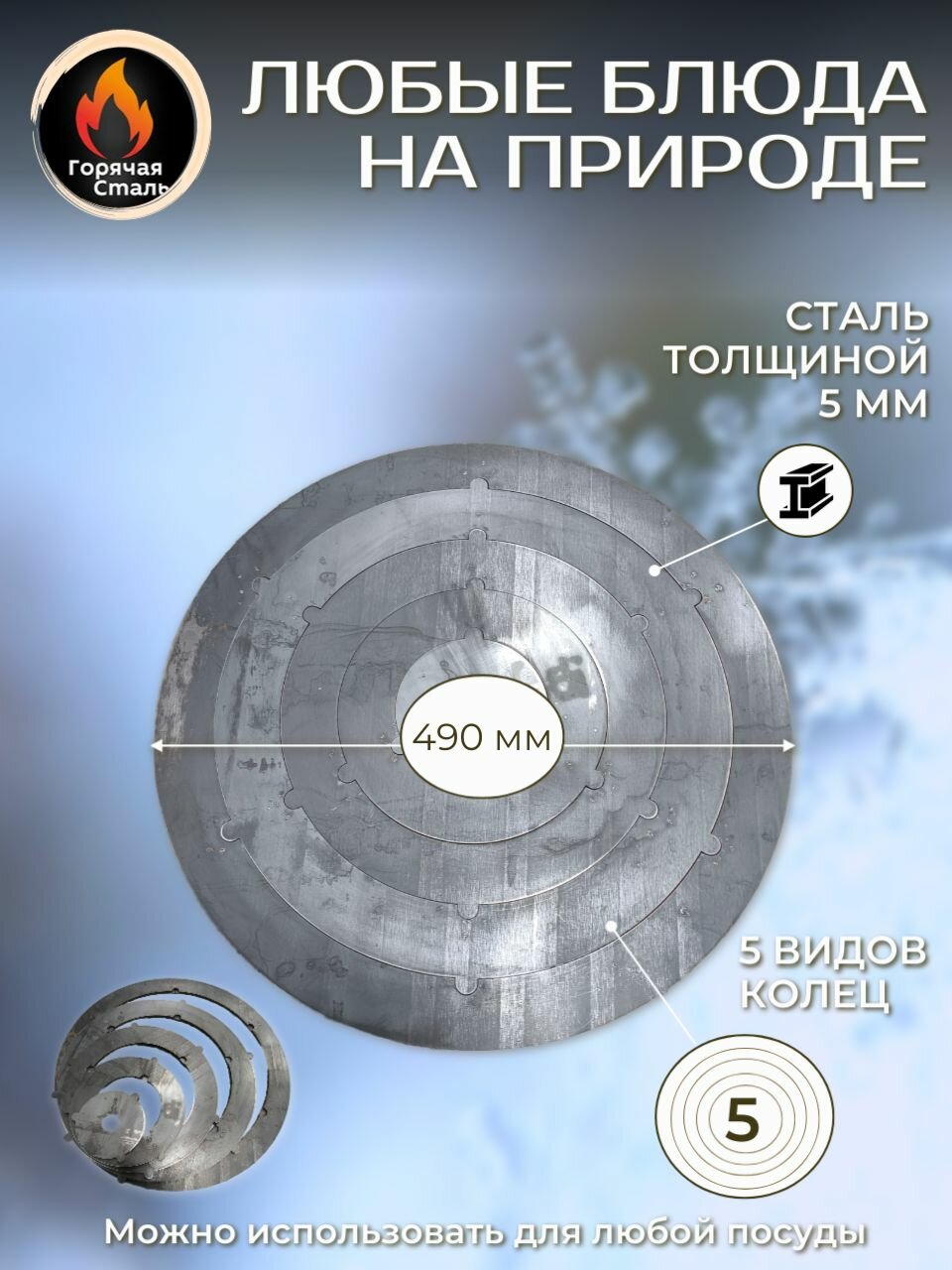 Кольца для печи под казан, подказанник, подставка, переходник, адаптер 490 мм, 5 шт. Горячая Сталь. 4 258 ₽