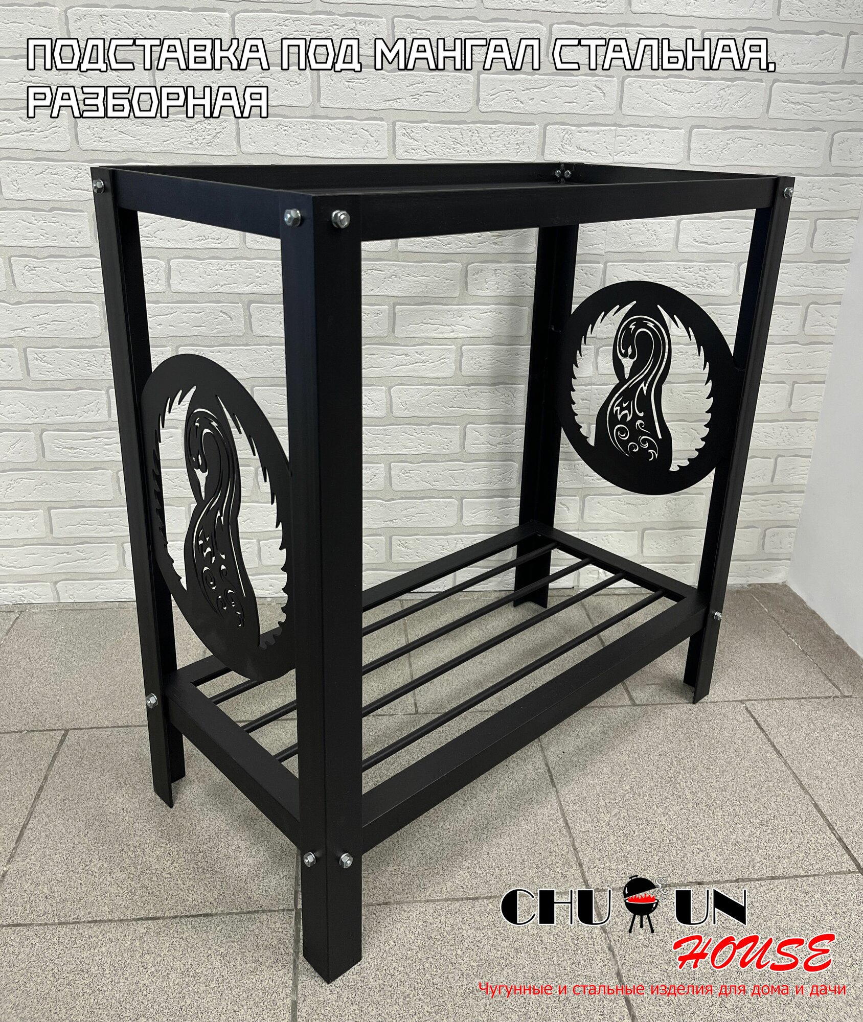 Подставка Лебедь, сталь, для готовки, 68x34x70см, черный матовый цвет информация: