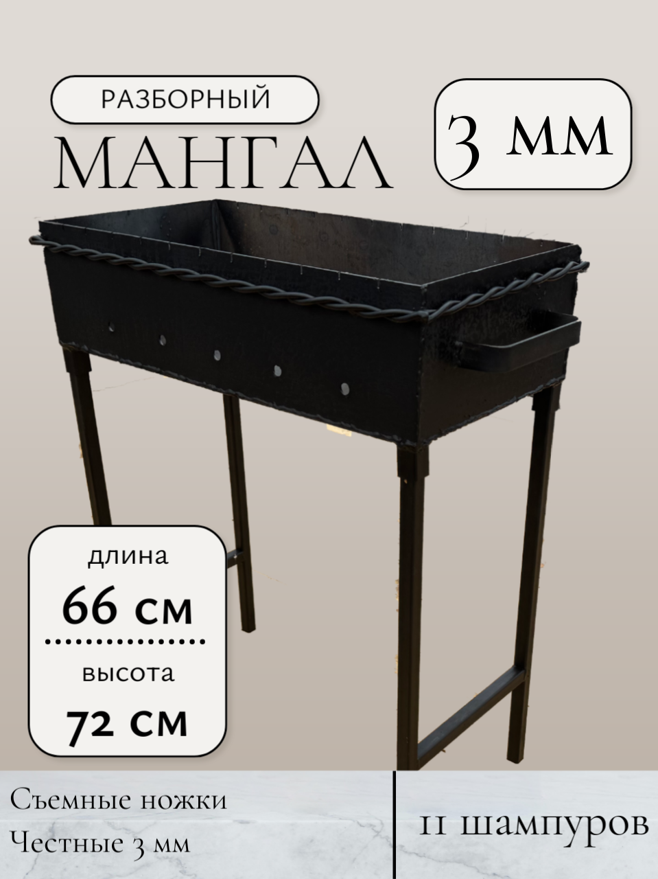 Отзывы на Мангал сварной складной, походный, 600 х 300 х 150/805 мм, Толщина 3 мм, витая проволока для усиления