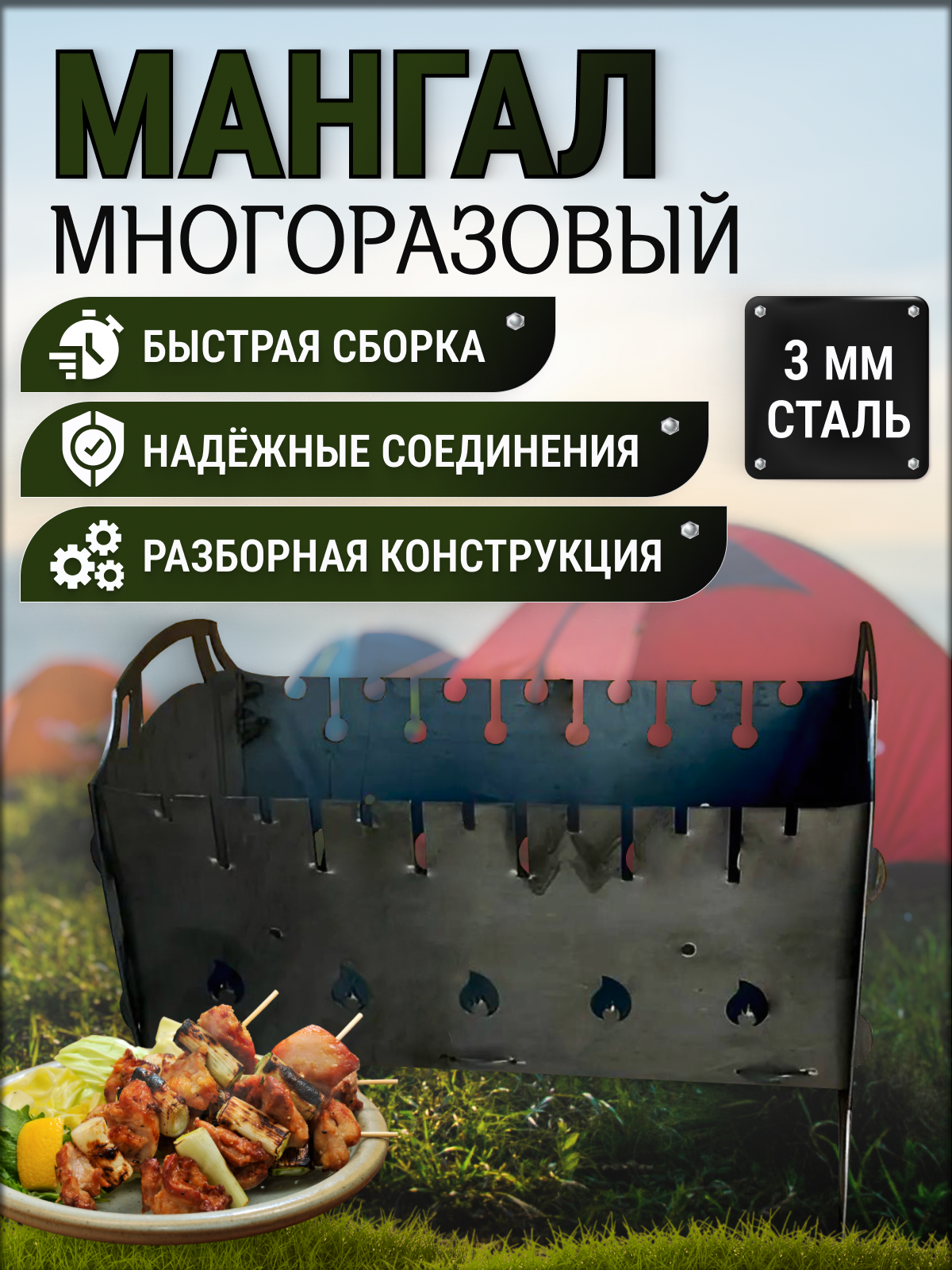 Отзывы на Мангал разборный 3 мм, складной, многоразовый, под 13 шампуров