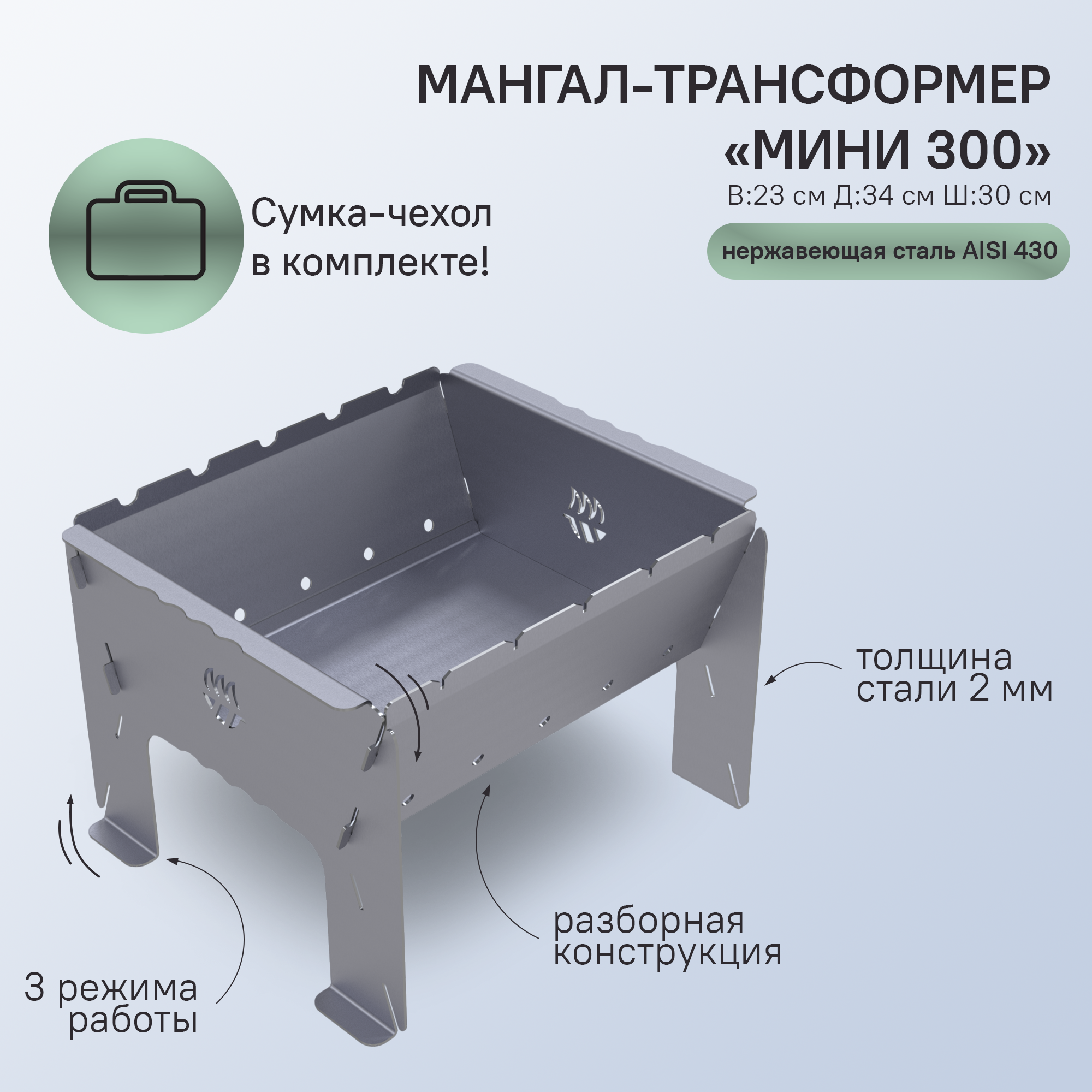 Мангал трансформер Мини-300 разборно-складной походный в сумке. Нержавеющая сталь 2мм информация: